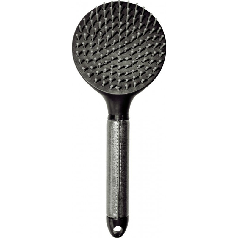 Brosse en polypropylène à picots nylon pour faciliter le démêlage des crins et de la crinière. Poignée en polyuréthane.