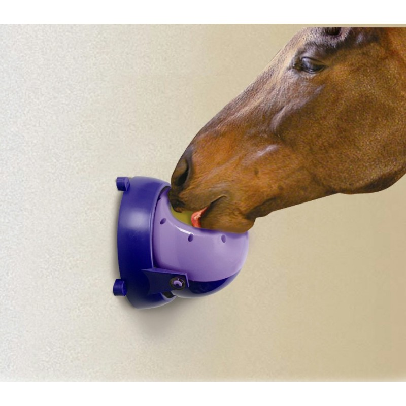 Le Tongue Twister est idéal pour les chevaux nerveux ou en box étroit. Il peut être utilisé avec un ou deux Little Likits. Pendant que votre cheval lèche le Likit, la balle se déplace, l’obligeant à rester plus longtemps à jouer pour obtenir sa récompense. A utiliser en box ou au paddock. Vendu sans les pierres.