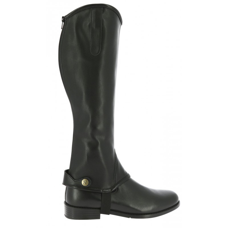 En polyuréthanne aspect cuir lisse. Effet galbant, grâce à la doublure en texture « stretch » élasthanne Micro Touch. Passage de pied élastique et fermeture arrière à glissière YKK, sécurisée par un bouton pression sur rabat cuir au bas.