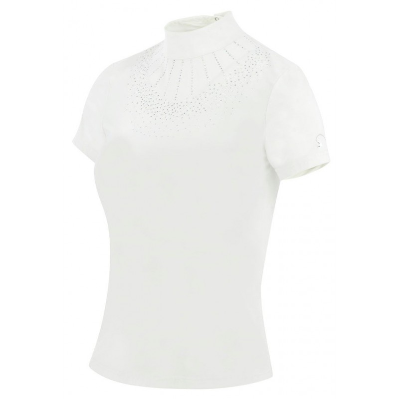 Pour faire briller les jeunes cavalières en compétition.- Respirant, léger et confortable. – Stretch : Liberté de mouvement totale.DÉTAILS :- Coupe ajustée et fermeture discrète au dos par boutons. – Plastron en strass.- Col blanc montant classique, logo argent bras gauche.COMPOSITION :83% polyamide, 17% élasthanne.