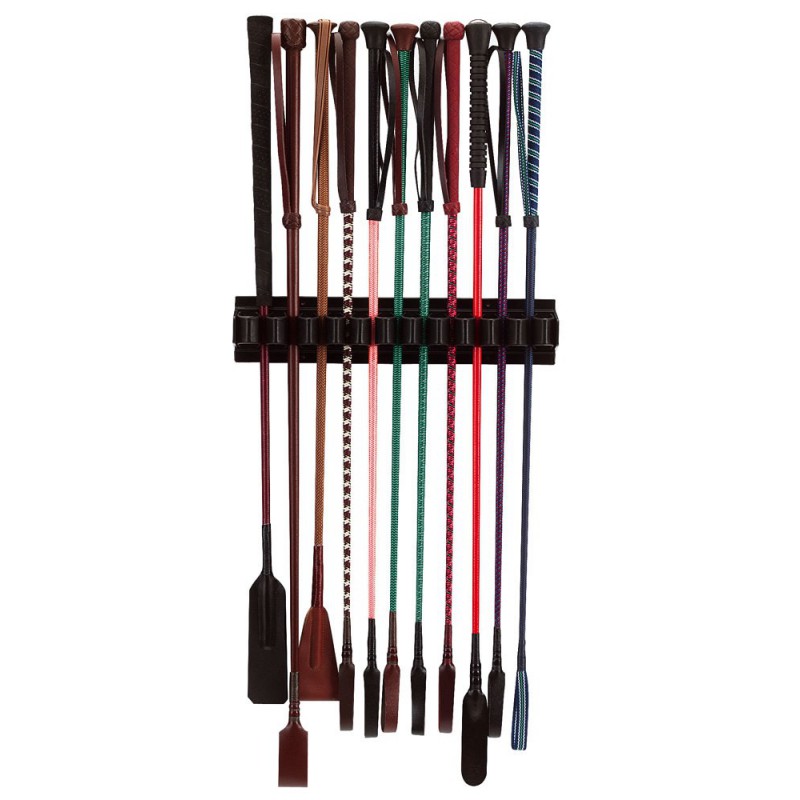En plastique à fixer avec 4 vis. Permet de suspendre 11 cravaches.?